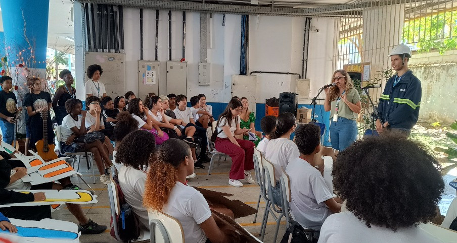 A Escola Municipal Orsina da Fonseca recebeu, no último dia 19 de novembro, técnicos da empresa Águas do Rio para uma ação dentro do Projeto Esse Rio é Nosso. O encontro foi promovido pelo Clube de Leitura Lendo se vai ao Longe e contou com a participação do Grupo Trapiche.A abertura do evento foi feita pelo diretor adjunto Victor, conhecido como Victão. Na sua fala ele agradeceu aos visitantes e falou da importância das ações de preservação do Rio Trapicheiros que passa próximo à escola.