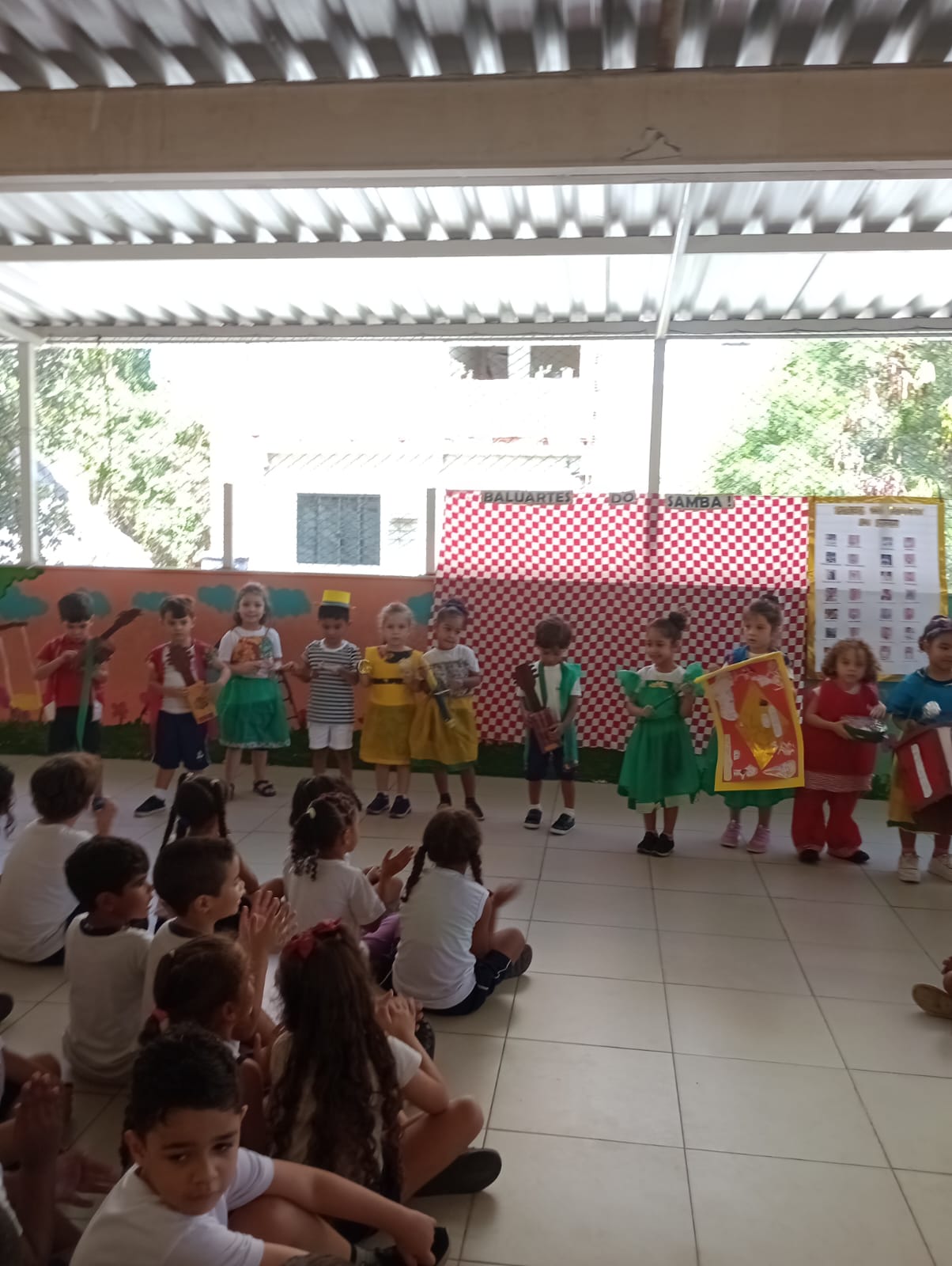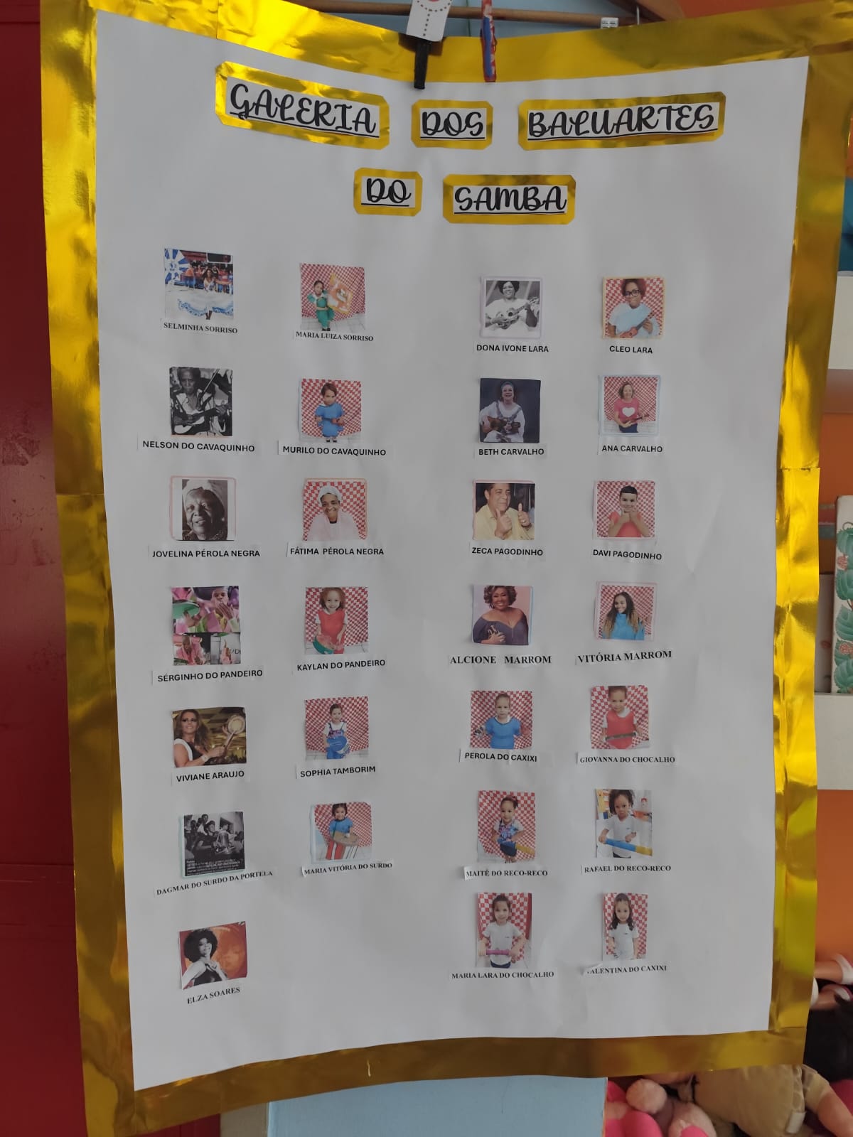 Iniciamos a contação da história das personalidades do samba, conhecidos como Baluartes do Samba. Reproduzimos o trem do samba com referência à algumas personalidades femininas do samba, e fotos das crianças no vagão. As crianças se caracterizaram de sambistas com fantasias improvisadas.