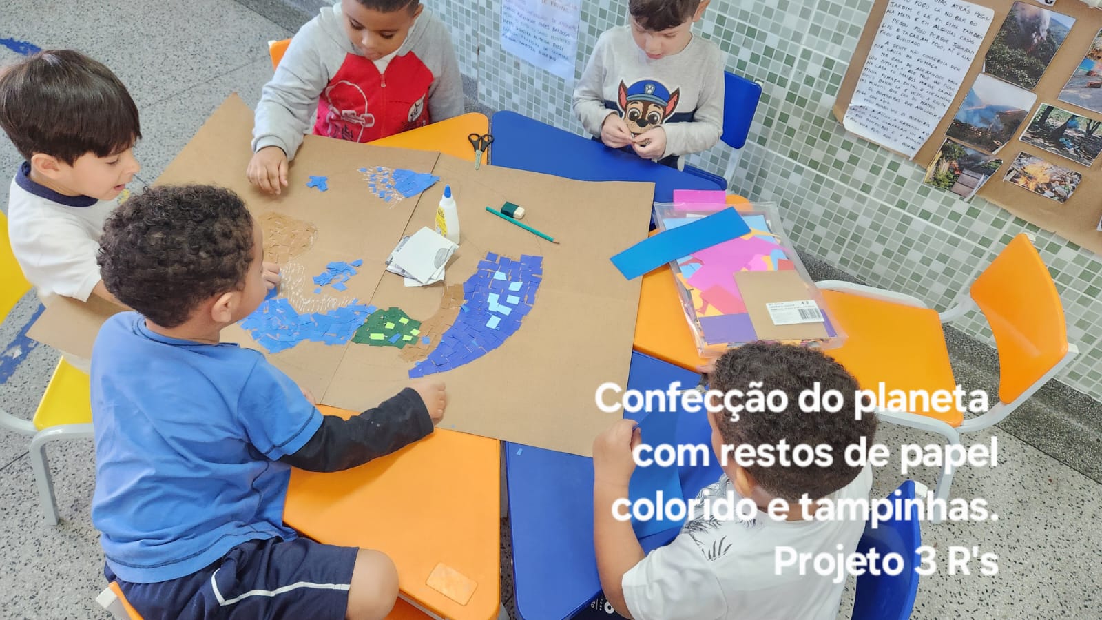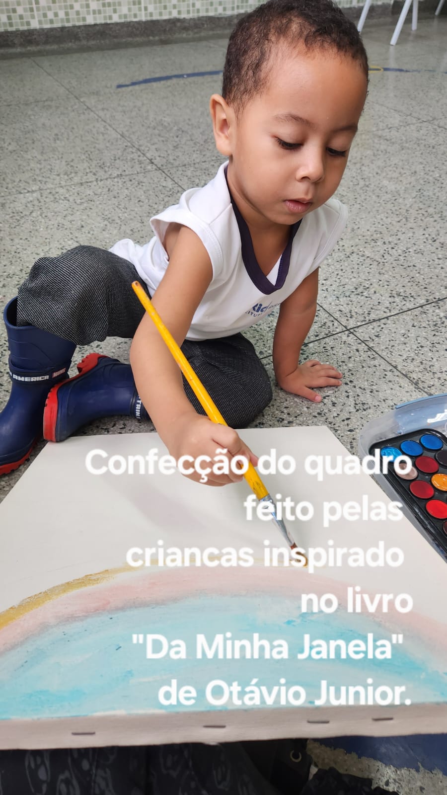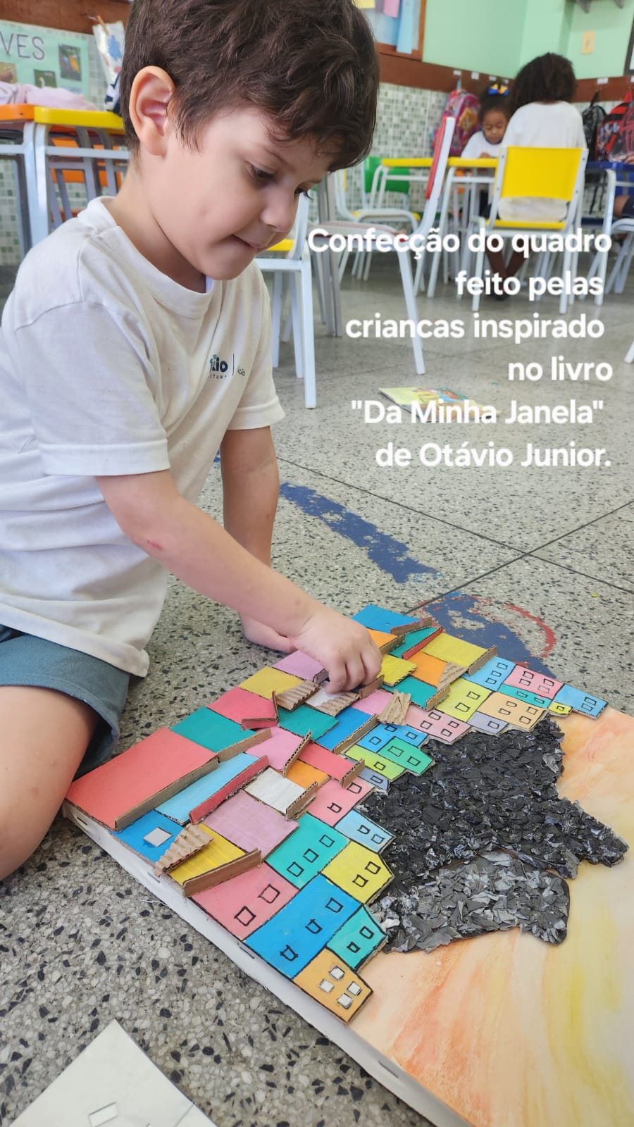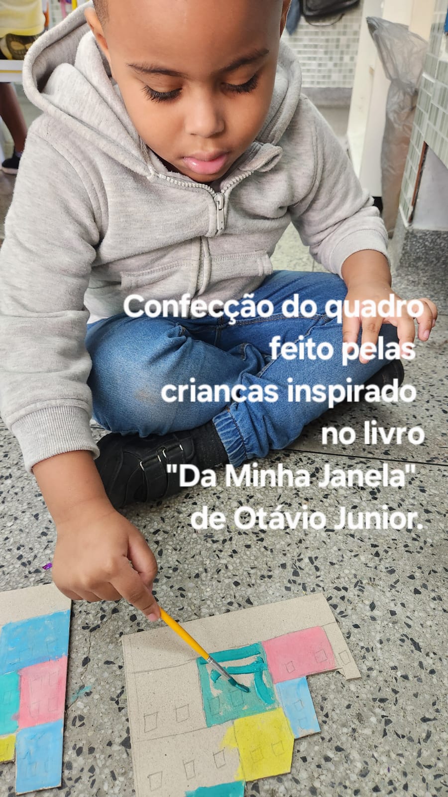 Quadro feitos pelo grupo Pré 1 B com base na fotografia do Influencer @laudodecria e no livro Da Minha Janela de Otavio Junior.