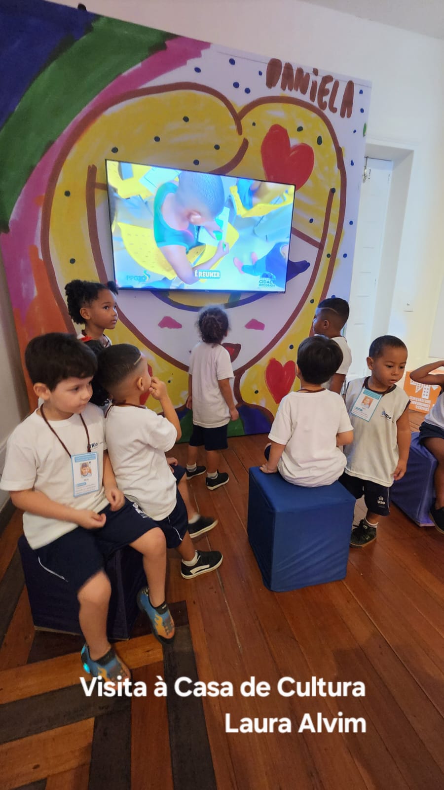 A abordagem se expandiu para a comunidade, com visitas à Casa de Cultura Laura Alvim, onde as crianças exploraram exposições e se inspiraram na obra de Gabriel Cardoso, influencer local (@laudodecria). Essa experiência gerou o subprojeto “Da Minha Janela”, baseado no livro de Otávio Júnior, no qual as crianças compartilharam suas perspectivas das janelas da creche e de suas casas, conectando-se às histórias do território. A valorização das memórias locais também foi aprofundada com a história de Elza Machado dos Santos, destacando seu legado e promovendo o sentimento de pertencimento.