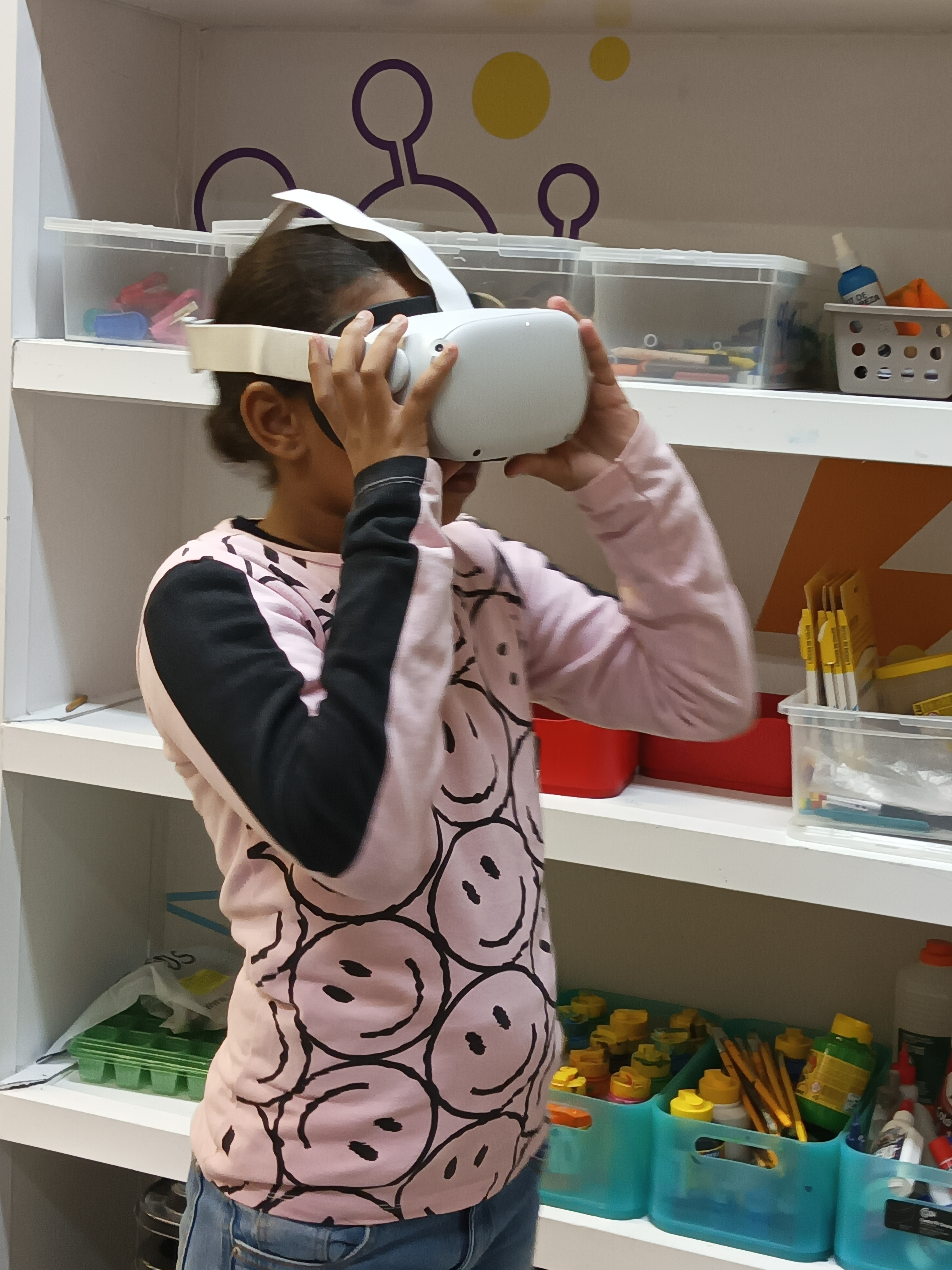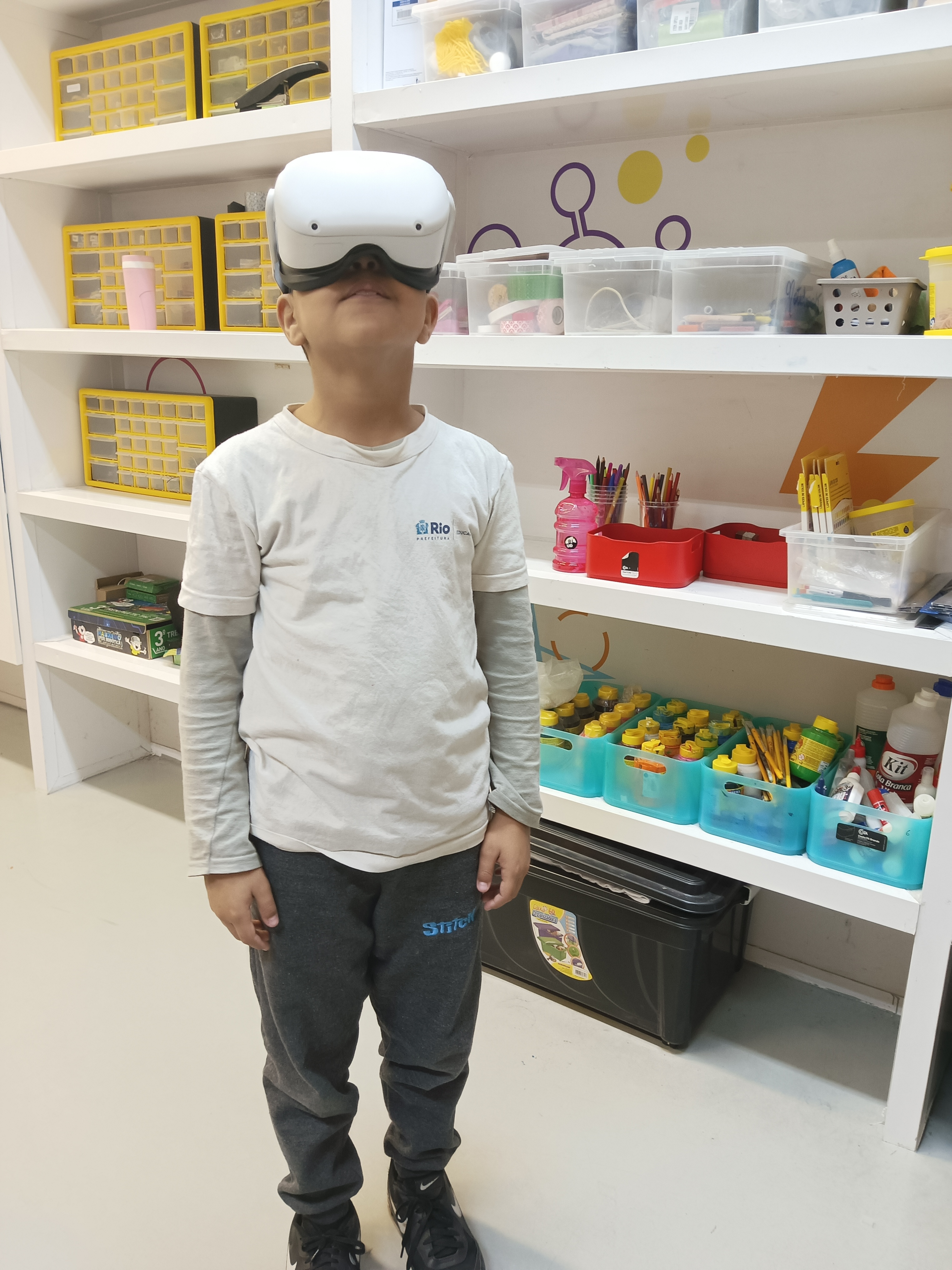 Mas a verdadeira viagem começou com a realidade virtual. Com o suporte técnico de Artur , usando óculos VR Meta Quest 2 os alunos entraram dentro de uma célula! Isso mesmo: eles caminharam por entre o citoplasma, viram as organelas e toda dinâmica do funcionamento das células. Uma experiência imersiva que fez a ciência ser sentida na pele — ou melhor, dentro do corpo!