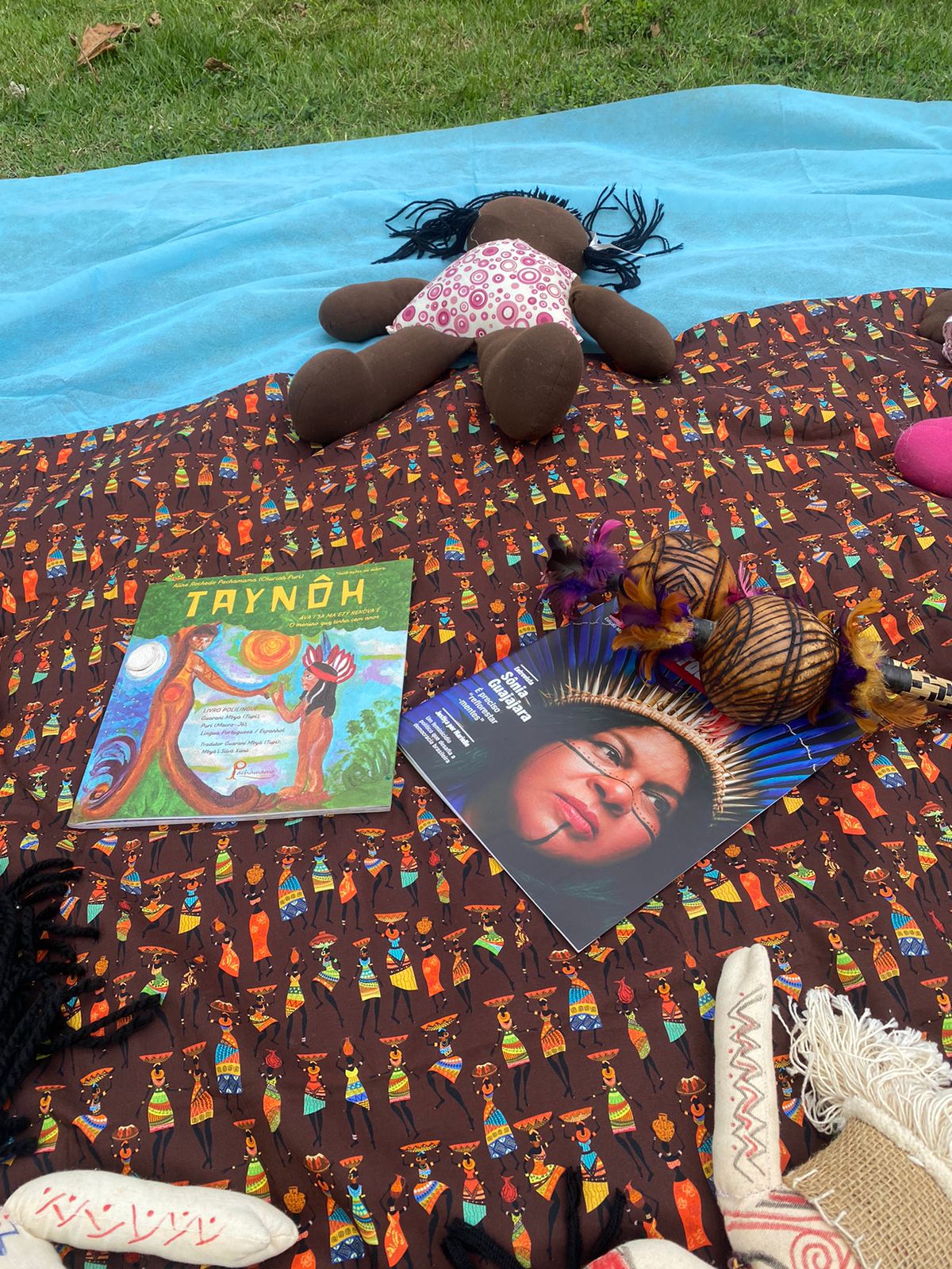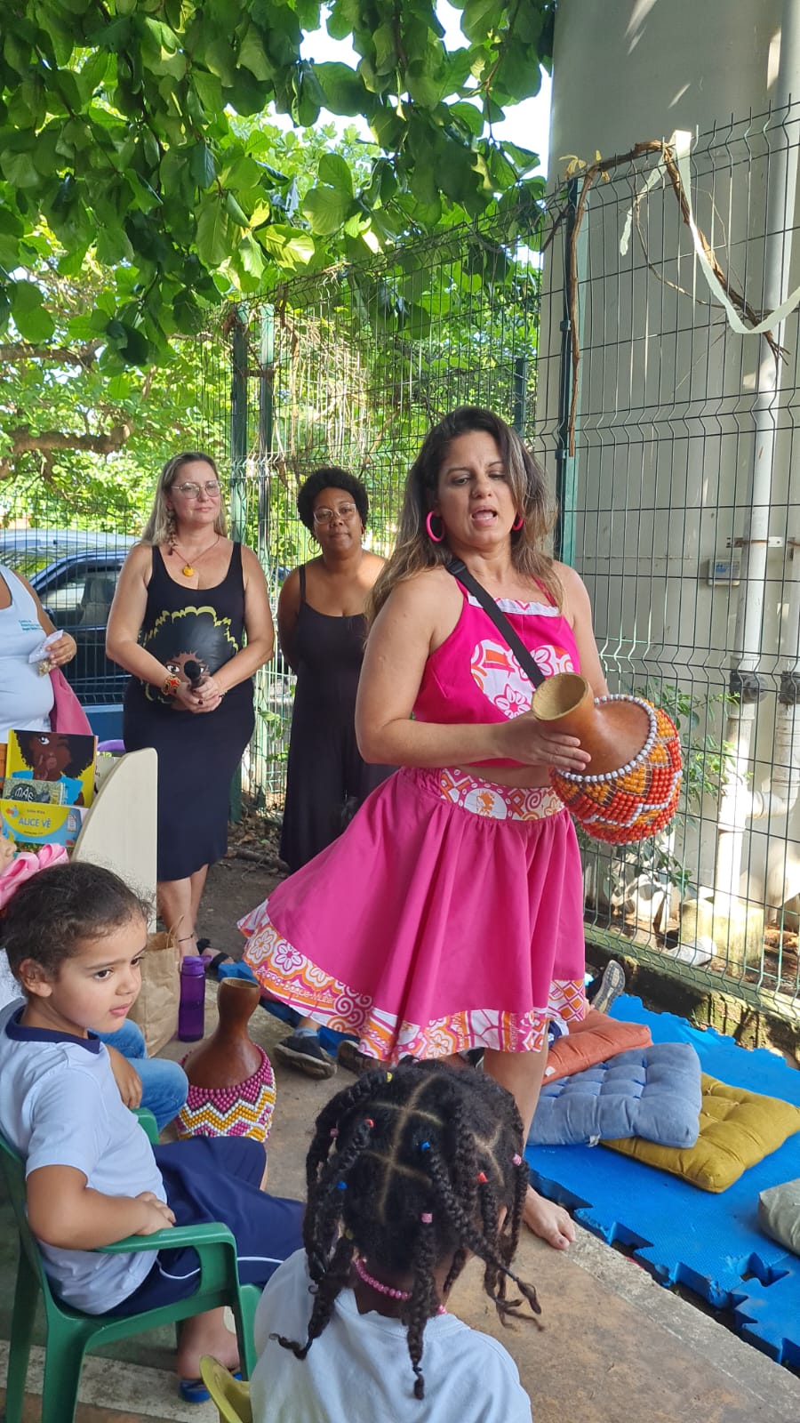Ao longo do ano letivo, experienciamos as culturas africanas, afro-brasileiras e indígenas através de propostas lúdicas, onde trabalhamos com a literatura infantil afro referenciada e indígena, explorando imagens e narrativas bem como evidenciando seus autores e ilustradores. Trabalhamos com propostas voltadas para valorização da autoimagem das crianças negras, valorizando seus corpos, cores e as texturas de seus cabelos com apoio do espelho, do toque, do cuidado enquanto afeto, e utilizando desenhos com lápis coloridos em tons de pele abarcando as diversas paletas e tons de nossas crianças;