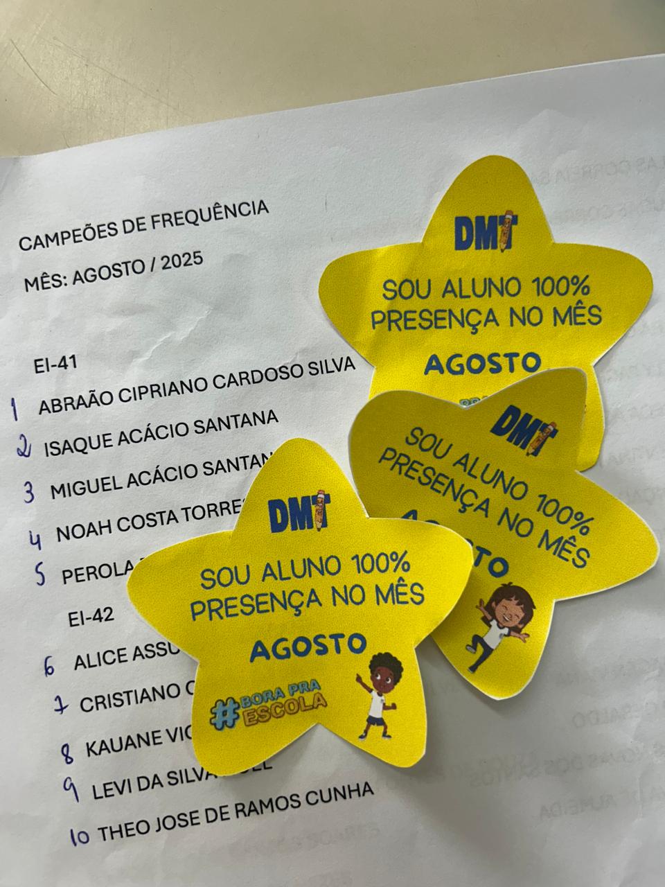 Durante o mês de agosto a equipe de secretaria acompanhou cuidadosamente a frequência escolar. No encerramento do mês, o grêmio participou ativamento na entrega de selos de reconhecimento aos alunos com 100% de presença, que foram entregues diante dos colegas e professores, reforçando a importância da presença constante nas aulas.