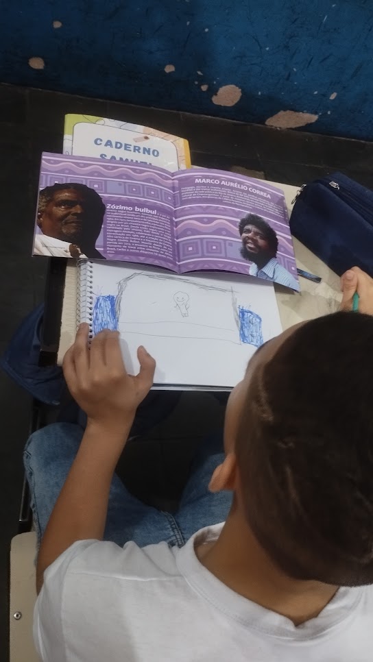 Desenhos também foram partes importantes para o mergulho nos livros trabalhados. Alguns registros foram direcionados após as rodas, como também registros cotidianos livres das crianças me permitiram compreender melhor suas impressões sobre as masculinidades negras.