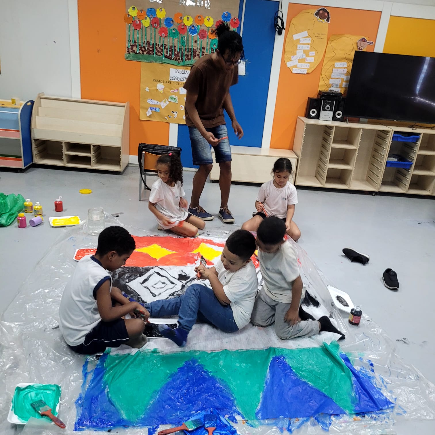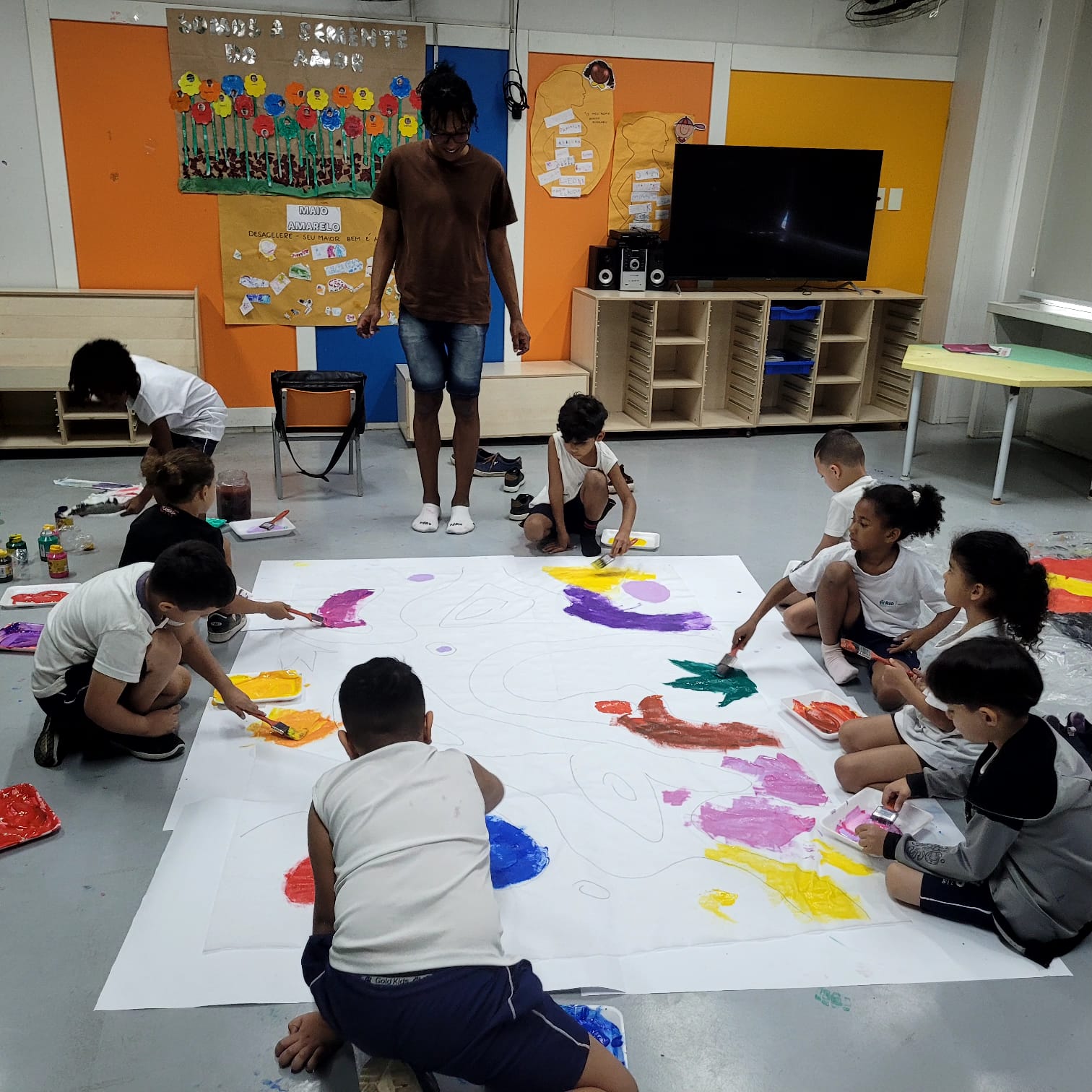 O projeto culminou na Amostra Cultural da escola, integrando todas as turmas em torno da temática da consciência étnico-racial. Nesse dia, as crianças participaram de pinturas faciais com grafismos africanos, assistiram a uma peça teatral e vivenciaram uma roda de capoeira, marcando um momento coletivo de celebração e valorização das origens africanas.