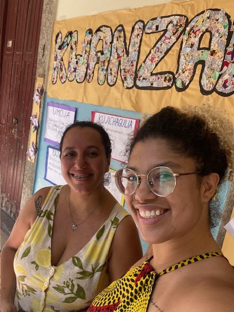 Primeiro Momento: Roda de conversa e abordagem de conhecimento prévio; o que dizem as crianças sobre África? Sobre celebração, sobretudo, de fim de ano? As crianças trouxeram suas percepções a cerca de África, algumas referenciaram histórias já lidas (Nina África, Obax, Chuva de Manga, Escola de Chuva), e, rapidamente o assunto circula sobre identidades, negritude, e inclusive, sobre a escravização e a forma como vários povos negros chegaram no Brasil. Mediando a conversa, salientamos a necessidade de se pensar a história de nossos antepassados para além da escravização; conforme até as contações de histórias que fizemos nos indicam, não descendemos de escravos, mas sim de reis e rainhas que foram escravizados. A partir disso, aborda-se o Kwanzaa como uma celebração afrodiaspórica, apresentando-o como uma prática que retoma princípios de comunidade, pautados na cultura negra e no resgate de identidades e sua valorização como algo intrínseco à nossa cultura, também.