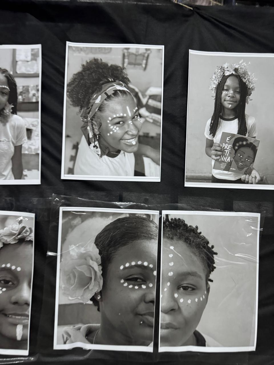 Em seguida, iniciamos oficinas de pintura afro e pintura antirracista, explorando cores, símbolos, padrões e grafismos presentes em estéticas africanas e afro-brasileiras. Essas oficinas prepararam o grupo para a etapa seguinte: o processo fotográfico, no qual os alunos experimentaram ser protagonistas de suas próprias narrativas, escolhendo poses, elementos estéticos e expressões que representassem sua identidade e beleza.