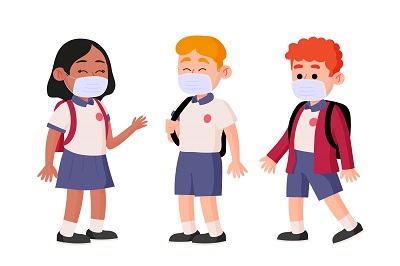 SMS: As crianças vão aprender mais facilmente a utilizar a máscara com ensinamentos, a repetição, e exemplos fornecidos de forma alegre e natural.