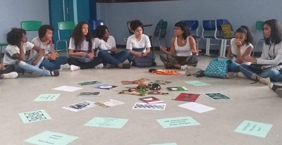 Luciana participa de um coletivo em prol da Educação para as Relações Étnico-Raciais da 2ª CRE. São encontros quinzenais on-line, que reúnem professores até mesmo de outras coordenadorias interessados no tema. Os participantes leem previamente um texto acadêmico disponibilizado. No encontro, o texto é discutido e fala-se também sobre práticas voltadas para as relações étnico-raciais em sala de aula – 150 educadores da Rede se inscreveram para participar do grupo de estudo que já está em sua terceira reunião .