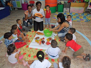 O número de profissionais envolvidos dá indícios da importância com que o tema tem sido tratado na Creche Samora Machel. Além da diretora Mabel Moore, se envolveram diretamente a diretora adjunta Márcia Nascimento, a professora articuladora Teresa Pacheco, seis professoras de Educação Infantil e 12 auxiliares. Lá, diariamente, são oferecidas quatro refeições: desjejum, almoço, lanche e jantar. Os esforços em conjunto já podem ser comemorados: “Não temos casos de obesidade que precisem de encaminhamento médico”.