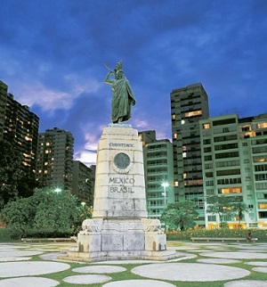 A estátua do guerreiro Cuauhtémoc foi doada pelo governo mexicano por ocasião do Centenário da Independência, em 1922. O pedestal com cinco metros de altura também tem grande relevância no conjunto. Sua base é adornada por quatro cabeças de uma divindade asteca, sendo que o granito foi especialmente escolhido por ter sido muito utilizado naquela sociedade. O monumento fica na praça de mesmo nome, entre os bairros do Flamengo e de Botafogo, que recebeu posteriormente tratamento paisagístico de Roberto Burle Marx.