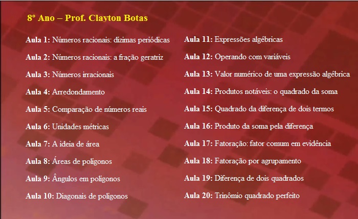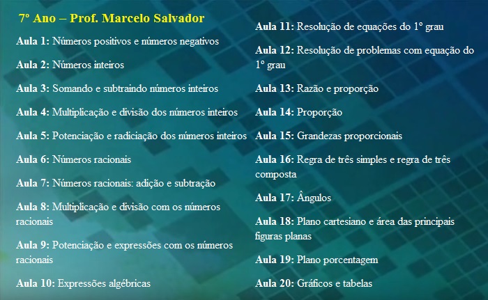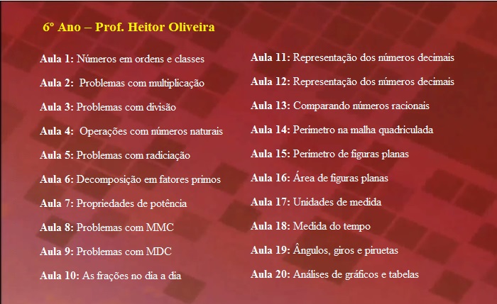Conheça o assunto de cada videoaula de Matemática, por ano de escolaridade: