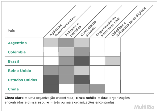 O Brasil possui tropas com três pontos nessa escala, assim como Cuba, Guatemala e México (entre os países latino americanos) e o próprio Reino Unido (onde a pesquisa foi desenvolvida). As equipes de nível 3 possuem membros trabalhando em tempo integral para controlar permanentemente a informação que circula em seus territórios.
