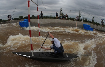 Nos Jogos Olímpicos, os atletas competirão em uma pista de 250m de extensão e cada um vai passar por 18 a 25 portas suspensas, distribuídas ao longo das corredeiras. As balizas verdes devem ser atravessadas no sentido a favor da correnteza e as vermelhas, contra. O trajeto é feito duas vezes e os tempos são somados. Tocar na baliza ou deixar de passar por uma delas são penalidades que acrescentam segundos ao tempo de cada competidor. O vencedor da prova é aquele que terminar no menor tempo possível. Para garantir a segurança, os atletas competem com capacetes e coletes salva-vidas.